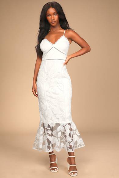 Leanne Midi Dress White Cocktail Dresses With Sleeves Rehearsal Dinner Dresses White Dress